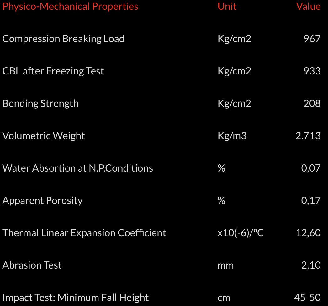 Stenen har en grå eller grå/beige ton, ofta med djupblå inslag. Ett framträdande drag är att den innehåller talrika spår av marina fossil, såsom snäckor och koraller, vilket ger varje skiva ett unikt mönster och karaktär.