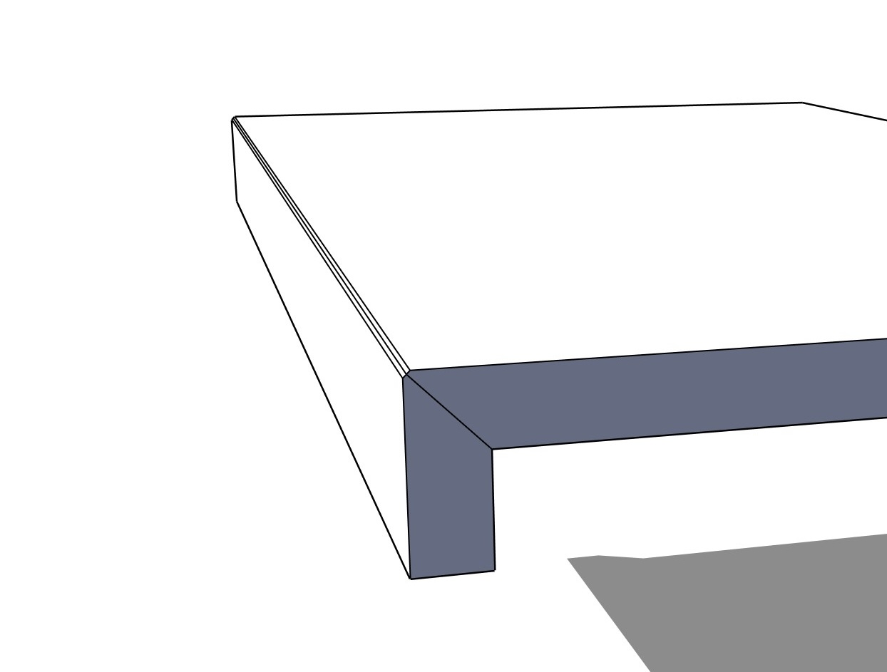 90° vikel. Genom att limma en frontsten i 45° mot stenskivar kan man öka känslan av massa. Samtidigt kan man hålla nere stenen vikt. Skarven blir väldigt fin och dirkret. Sedan slipar man ner den kanten en aning för att minska risken för att stenen flisar sig.